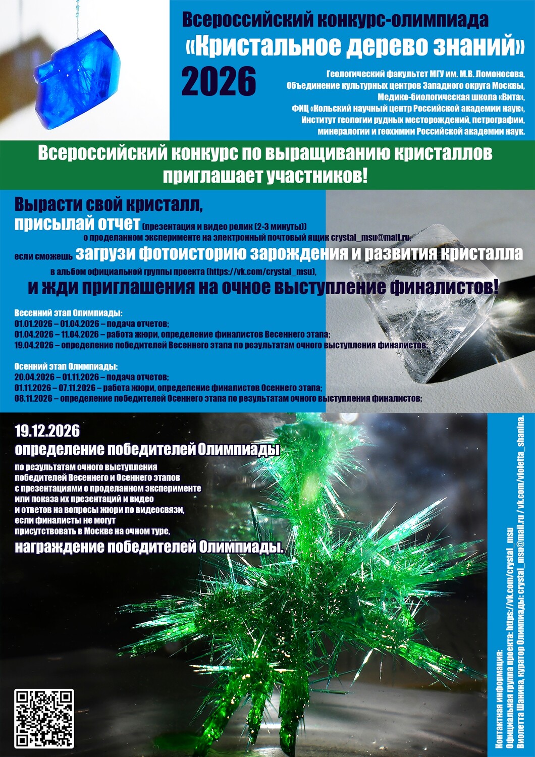 Это конкурс для всех, кто увлекается выращиванием разнообразных кристаллов, организованный геологическим факультетом МГУ.